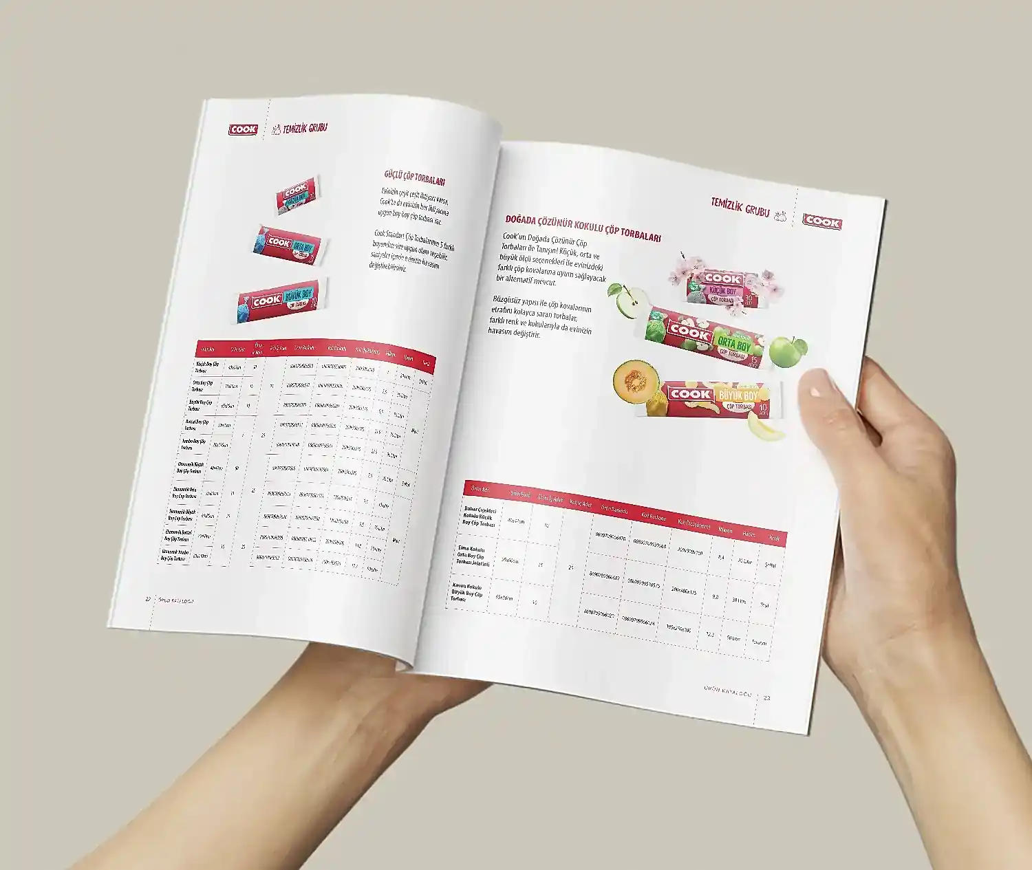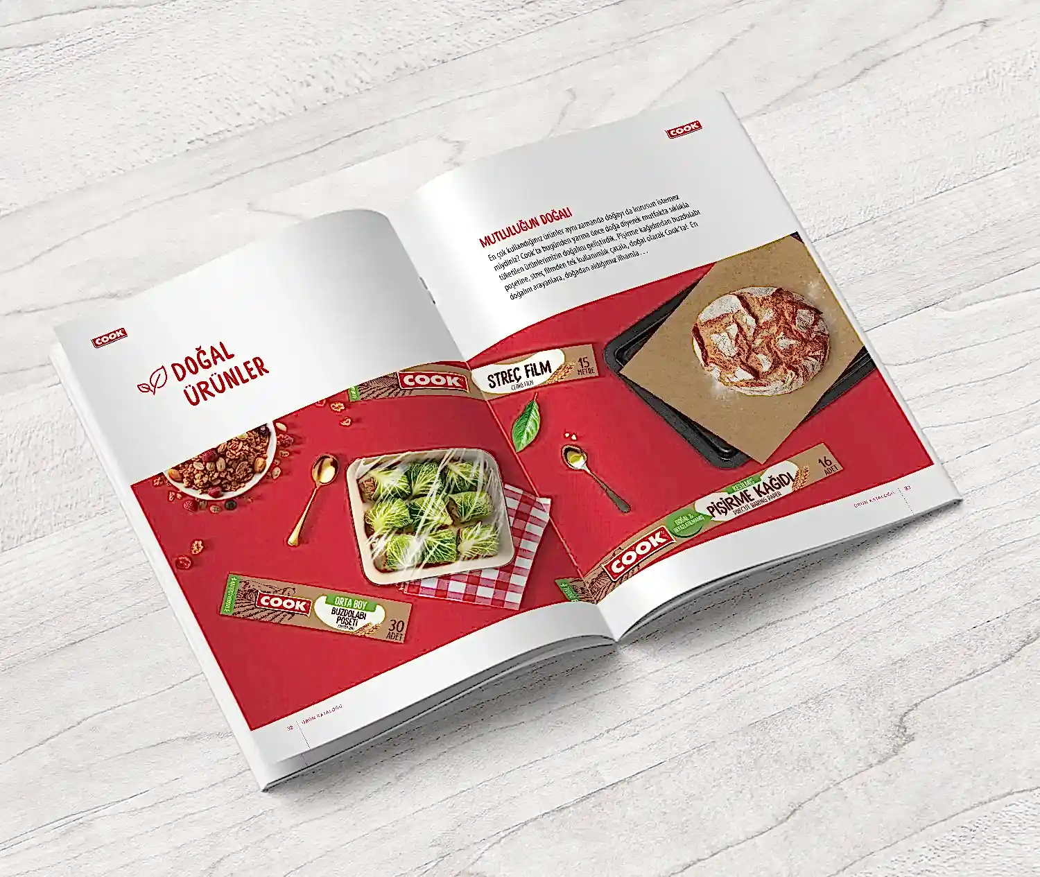 Cook için hazırladığımız katalogta, markanın mutfakta sunduğu pratik ve çözüm odaklı yaklaşımı tasarımın merkezine aldık.